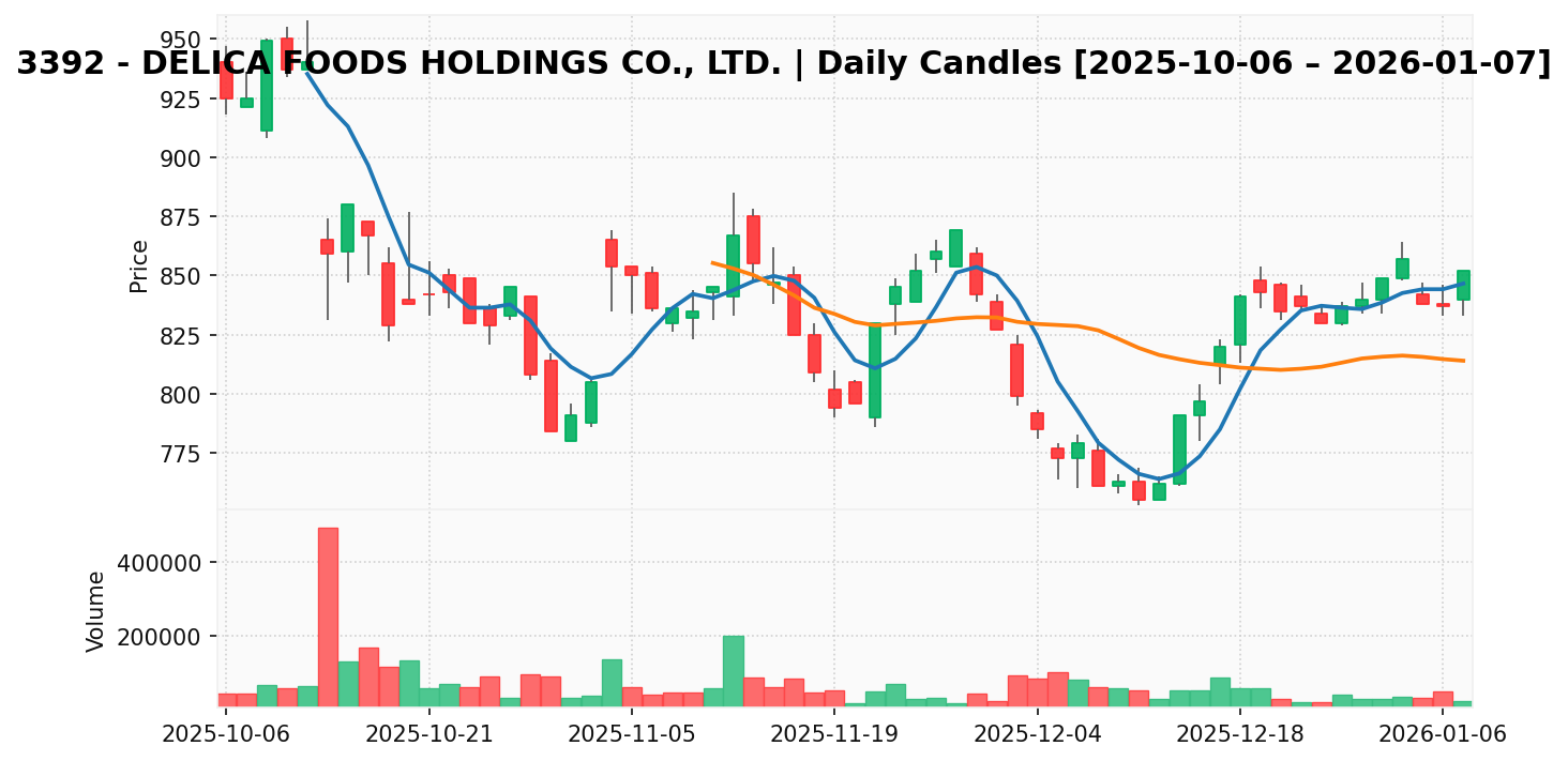 デリカフーズ(銘柄コード:3392) ※2026/01/08朝更新