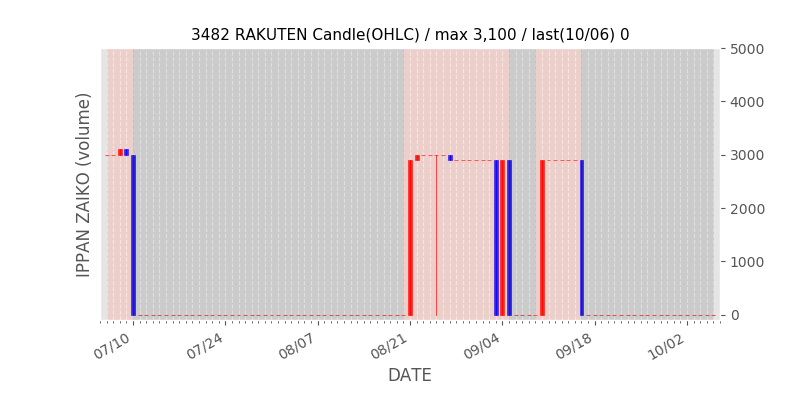 権利落ち日になると在庫が急回復します。どれだけの在庫が供給されたかを類推できます。もちろん、権利付最終日以前に大量補充された例も目立ちますから、過去チャートをご覧になる際は日付にご注意ください。