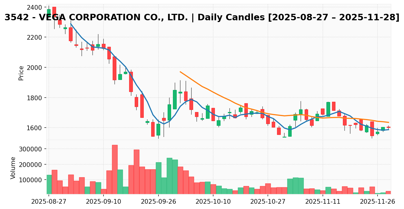 ベガコーポレーション(銘柄コード:3542) ※2025/12/01朝更新