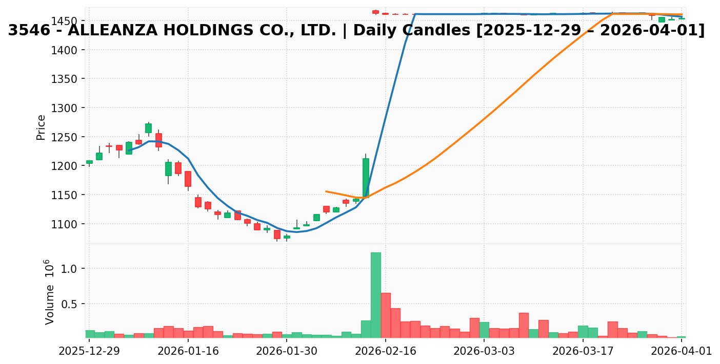 アレンザ(銘柄コード:3546) ※2026/04/02朝更新