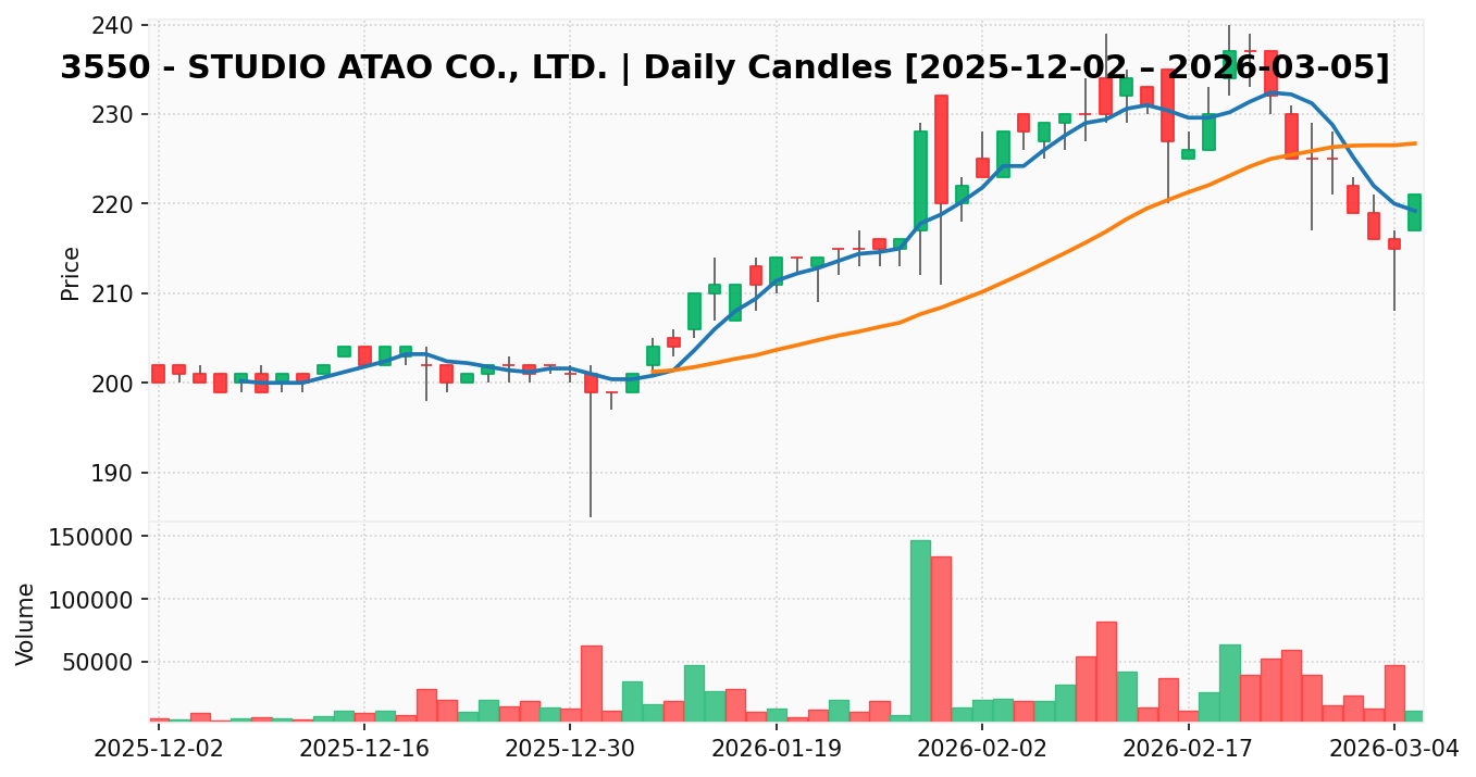 スタジオアタオ(銘柄コード:3550) ※2026/03/06朝更新