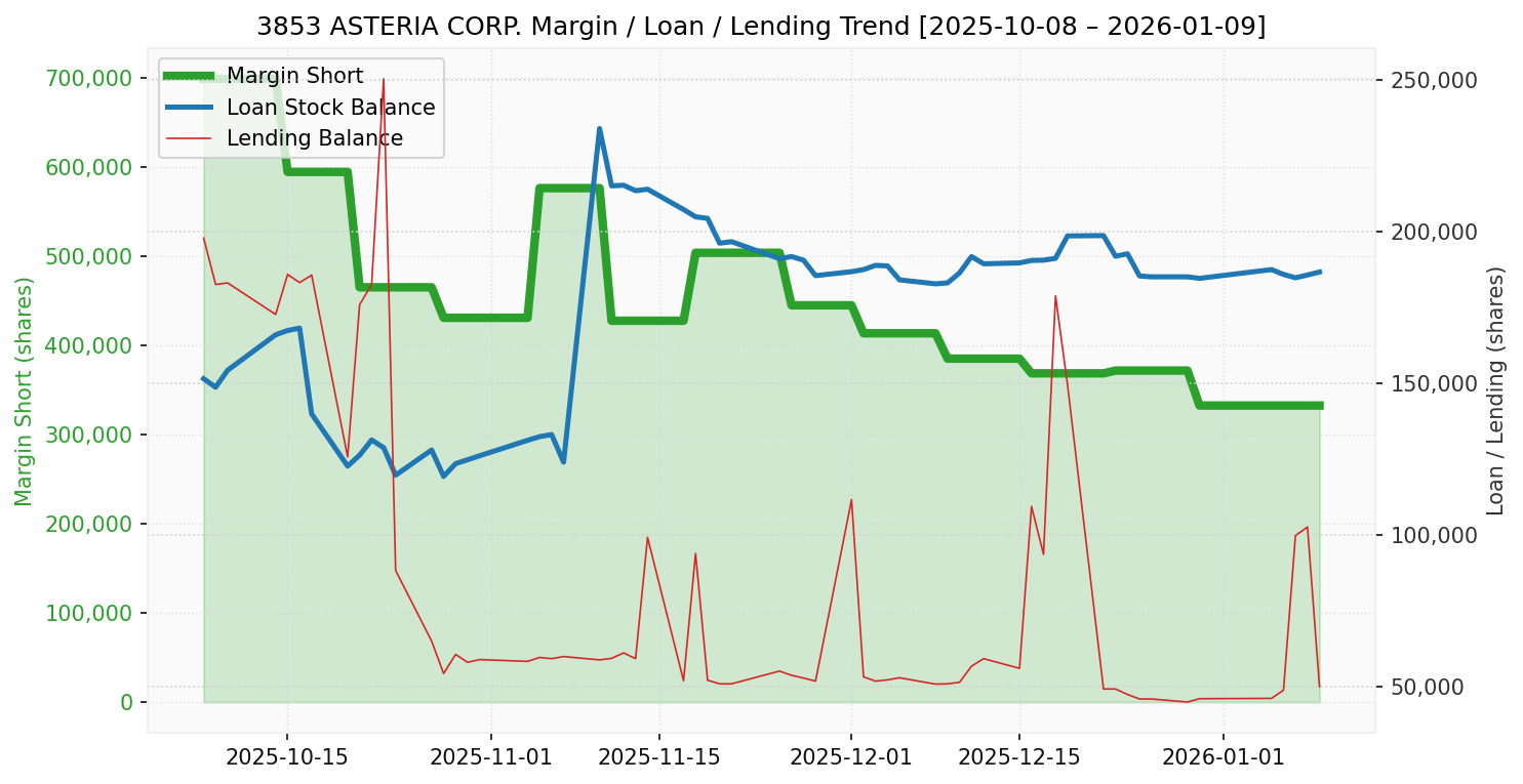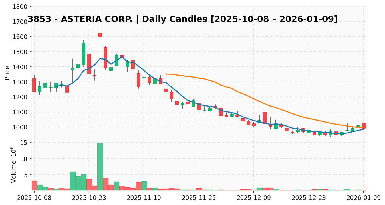 アステリア(銘柄コード:3853) ※2026/01/11朝更新