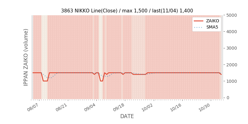 日本製紙(3863)の一般信用在庫推移