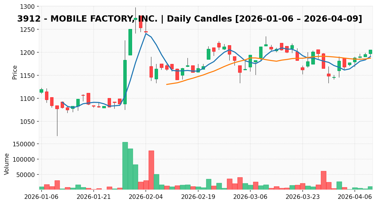 モバイルファクトリー(銘柄コード:3912) ※2026/04/10朝更新