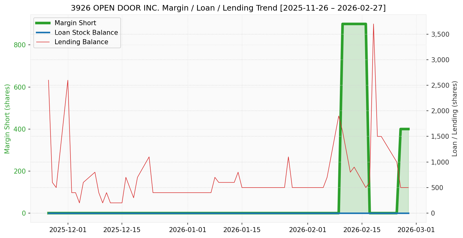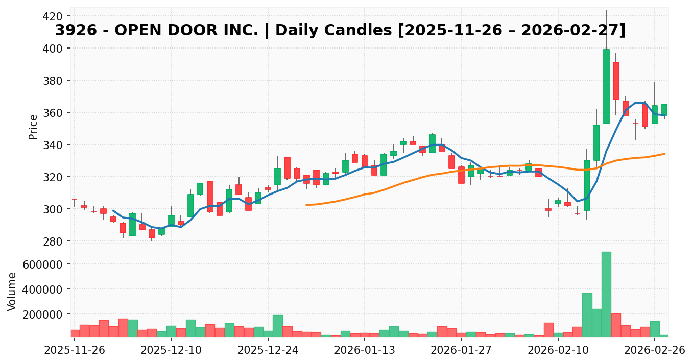 オープンドア(銘柄コード:3926) ※2026/03/01朝更新