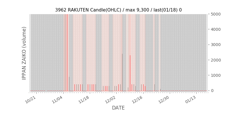 高値付近にある指値注文の合計株数です。一見在庫は無いのにキープの注文だけ行われクロス実行されないまま終わる注文は多数あり、その株数がどのくらいか?を推定する手がかりです。当然株数の全てが一般売りとは限りませんが、在庫数だけでは実態が見えない現状への対策です。