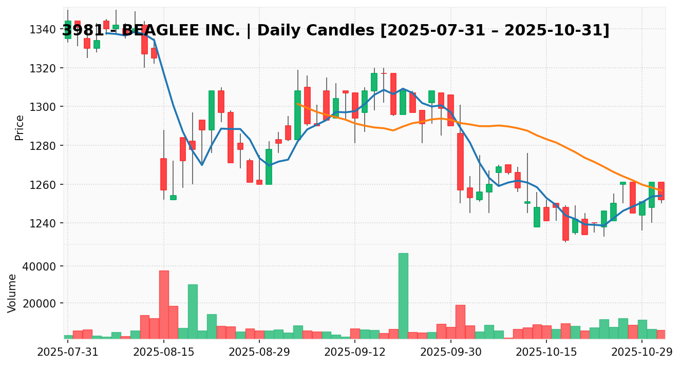 ビーグリー(銘柄コード:3981) ※2025/11/04朝更新