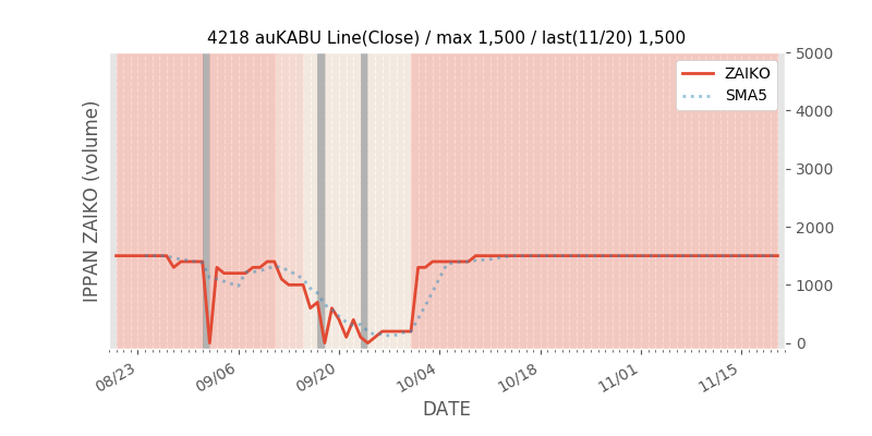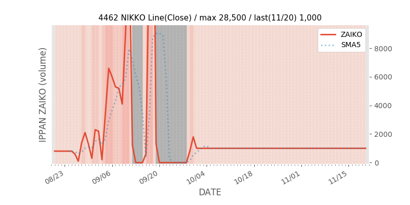 権利落ち日になると在庫が急回復します。どれだけの在庫が供給されたかを類推できます。もちろん、権利付最終日以前に大量補充された例も目立ちますから、過去チャートをご覧になる際は日付にご注意ください。
