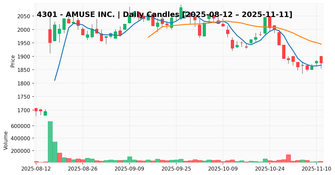 アミューズ(銘柄コード:4301) ※2025/11/12朝更新