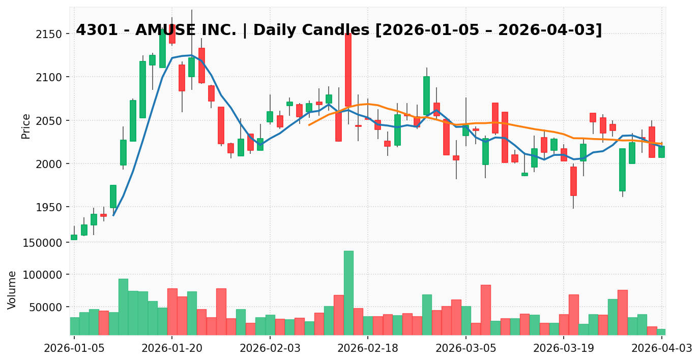 アミューズ(銘柄コード:4301) ※2026/04/04朝更新
