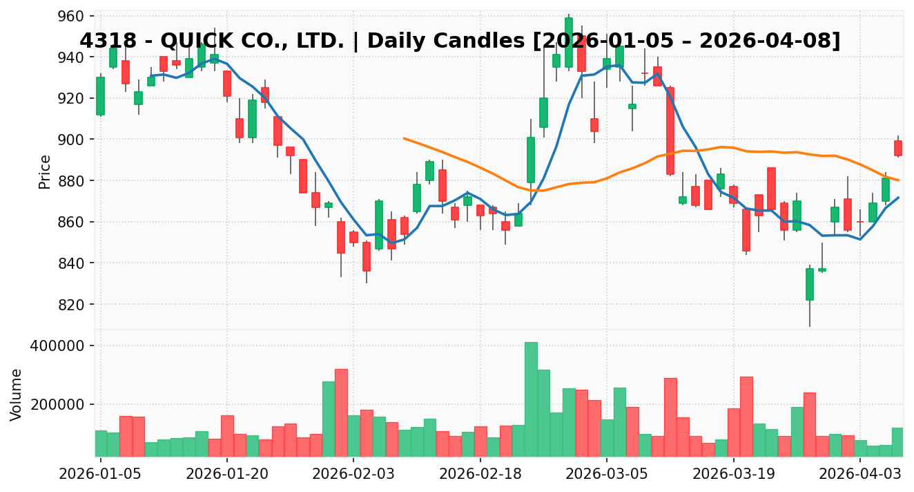 クイック(銘柄コード:4318) ※2026/04/09朝更新