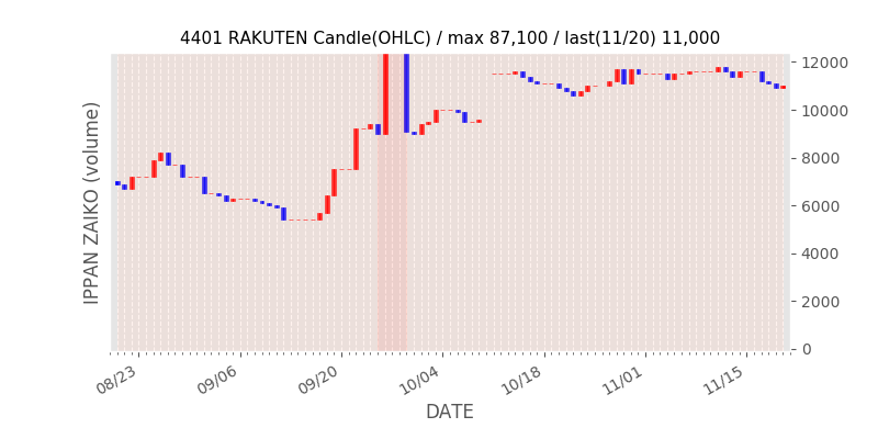 権利落ち日になると在庫が急回復します。どれだけの在庫が供給されたかを類推できます。もちろん、権利付最終日以前に大量補充された例も目立ちますから、過去チャートをご覧になる際は日付にご注意ください。