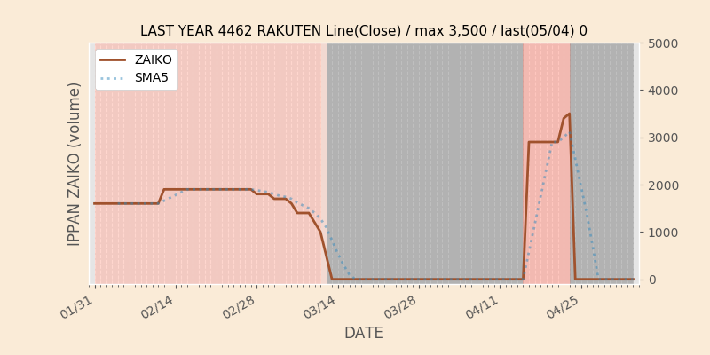 権利落ち日になると在庫が急回復します。どれだけの在庫が供給されたかを類推できます。もちろん、権利付最終日以前に大量補充された例も目立ちますから、過去チャートをご覧になる際は日付にご注意ください。