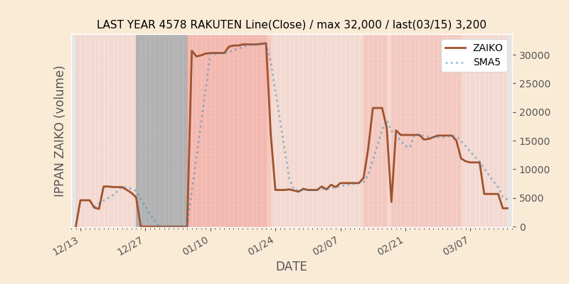 権利落ち日になると在庫が急回復します。どれだけの在庫が供給されたかを類推できます。もちろん、権利付最終日以前に大量補充された例も目立ちますから、過去チャートをご覧になる際は日付にご注意ください。