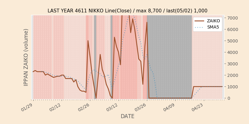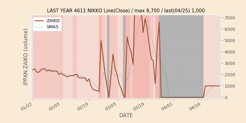 大日本塗料と在庫推移チャートが似ている銘柄🙈