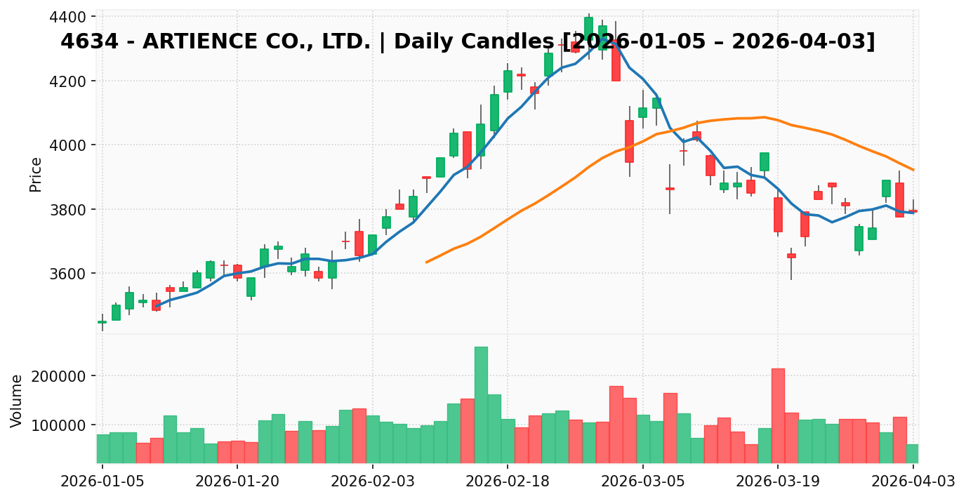 artience(銘柄コード:4634) ※2026/04/06朝更新