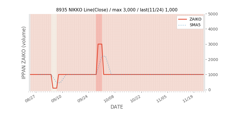 権利落ち日になると在庫が急回復します。どれだけの在庫が供給されたかを類推できます。もちろん、権利付最終日以前に大量補充された例も目立ちますから、過去チャートをご覧になる際は日付にご注意ください。