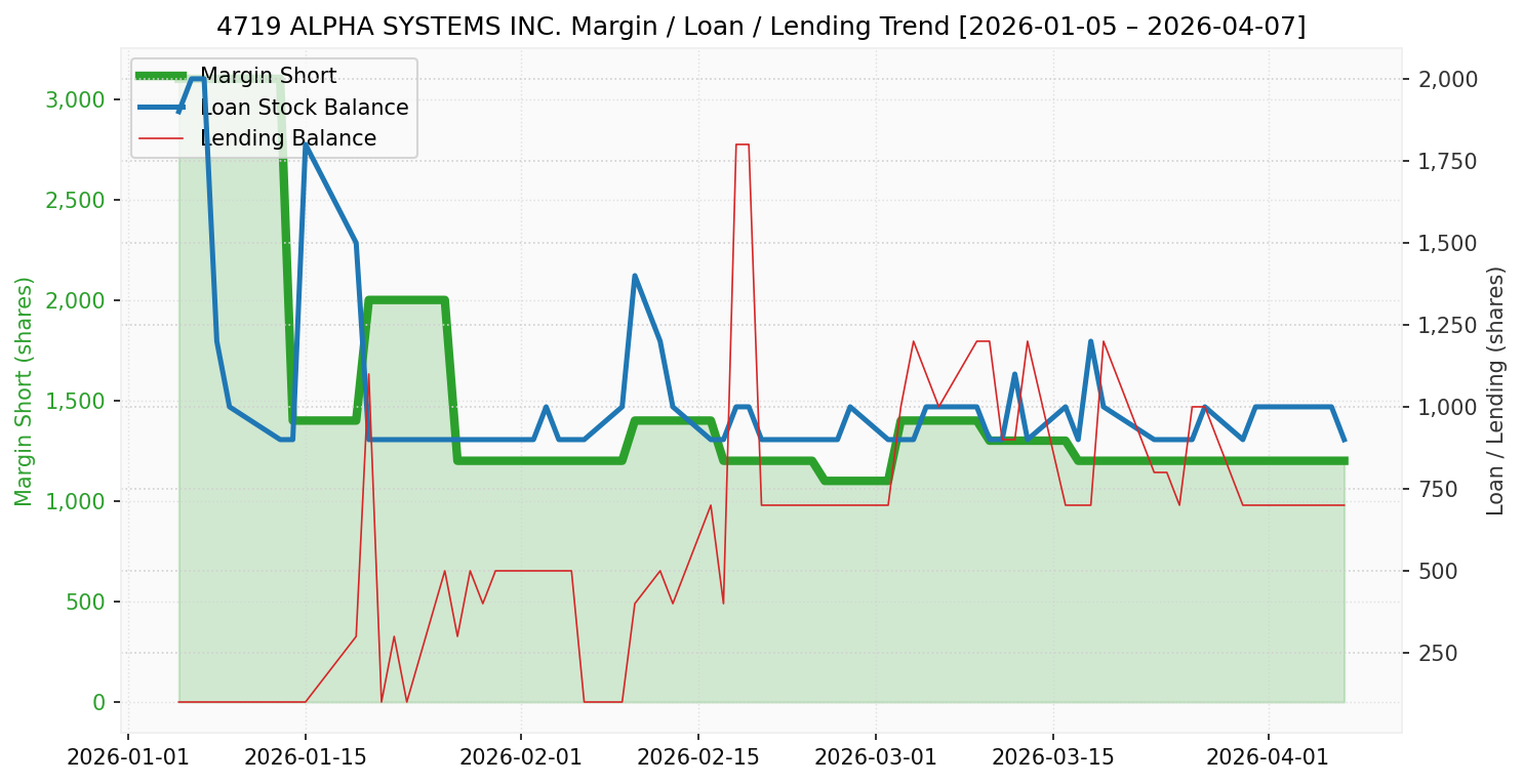 アルファシステムズ(4719)の一般信用在庫推移