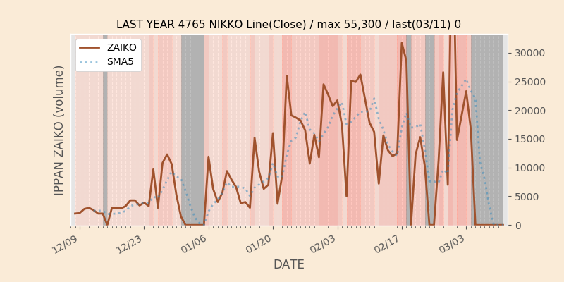 権利落ち日になると在庫が急回復します。どれだけの在庫が供給されたかを類推できます。もちろん、権利付最終日以前に大量補充された例も目立ちますから、過去チャートをご覧になる際は日付にご注意ください。