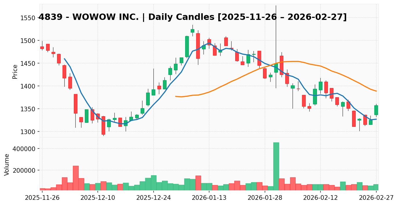 WOWOW(銘柄コード:4839) ※2026/02/28朝更新