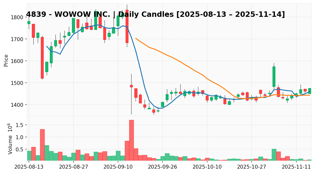 WOWOW(銘柄コード:4839) ※2025/11/16朝更新