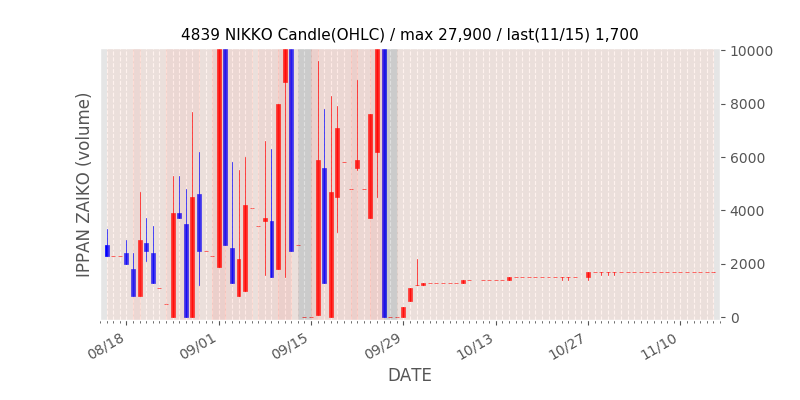 権利落ち日になると在庫が急回復します。どれだけの在庫が供給されたかを類推できます。もちろん、権利付最終日以前に大量補充された例も目立ちますから、過去チャートをご覧になる際は日付にご注意ください。