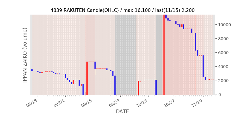 高値付近にある指値注文の合計株数です。一見在庫は無いのにキープの注文だけ行われクロス実行されないまま終わる注文は多数あり、その株数がどのくらいか?を推定する手がかりです。当然株数の全てが一般売りとは限りませんが、在庫数だけでは実態が見えない現状への対策です。