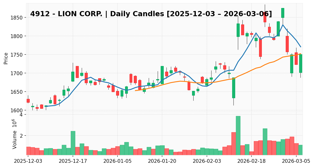 ライオン(銘柄コード:4912) ※2026/03/07朝更新