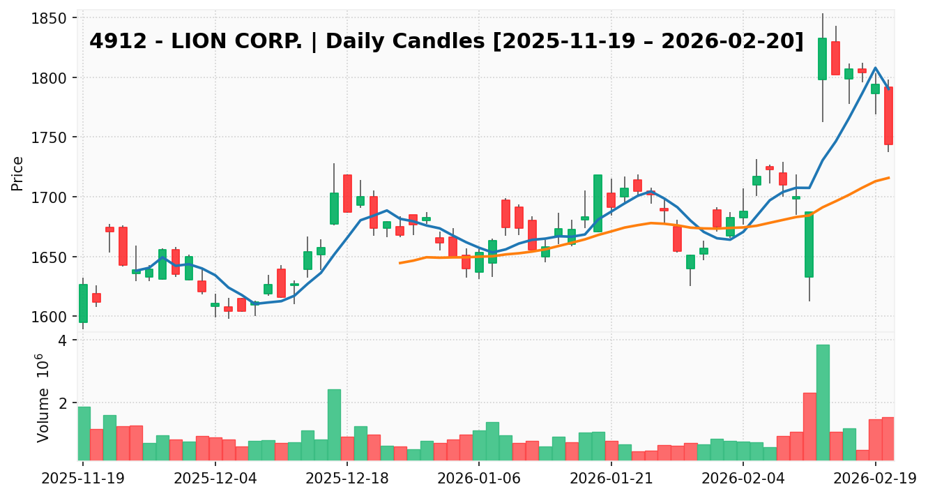 ライオン(銘柄コード:4912) ※2026/02/21朝更新