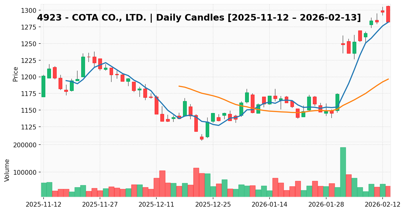 コタ(銘柄コード:4923) ※2026/02/15朝更新