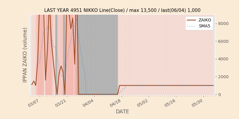 権利落ち日になると在庫が急回復します。どれだけの在庫が供給されたかを類推できます。もちろん、権利付最終日以前に大量補充された例も目立ちますから、過去チャートをご覧になる際は日付にご注意ください。