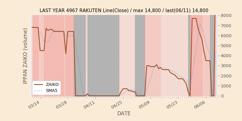 権利落ち日になると在庫が急回復します。どれだけの在庫が供給されたかを類推できます。もちろん、権利付最終日以前に大量補充された例も目立ちますから、過去チャートをご覧になる際は日付にご注意ください。