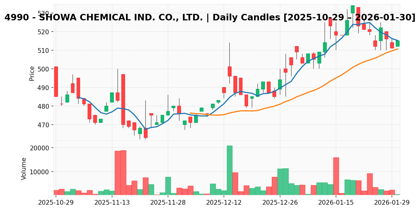 昭和化学工業(銘柄コード:4990) ※2026/01/31朝更新