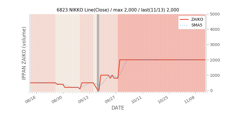 権利落ち日になると在庫が急回復します。どれだけの在庫が供給されたかを類推できます。もちろん、権利付最終日以前に大量補充された例も目立ちますから、過去チャートをご覧になる際は日付にご注意ください。