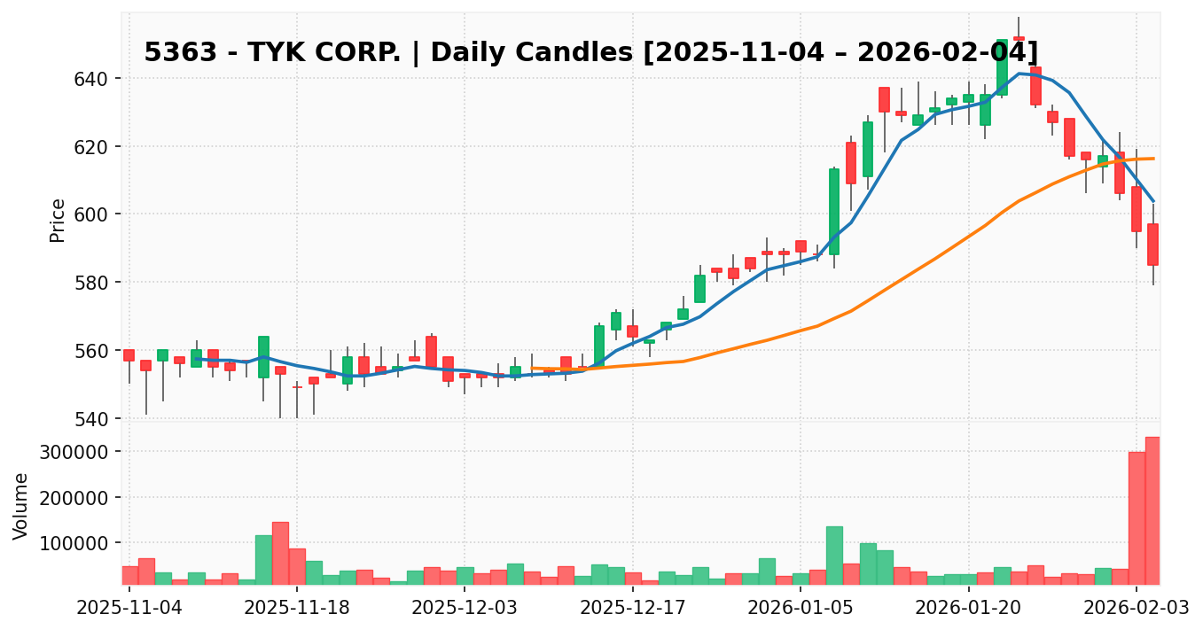 TYK(銘柄コード:5363) ※2026/02/05朝更新