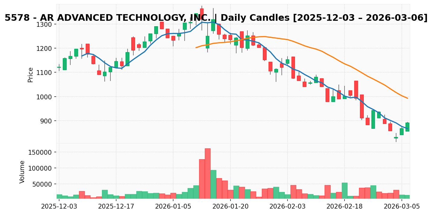ARアドバンストテクノロジ(銘柄コード:5578) ※2026/03/07朝更新