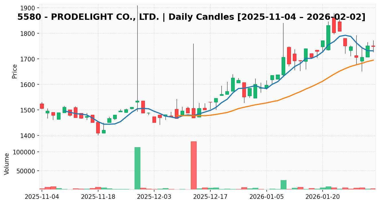 プロディライト(銘柄コード:5580) ※2026/02/03朝更新