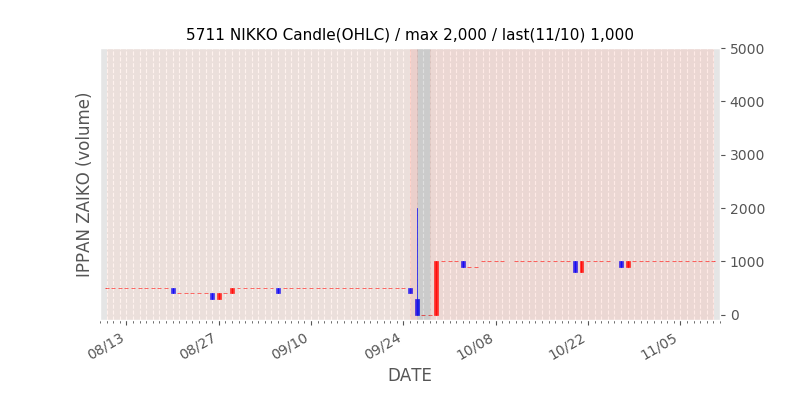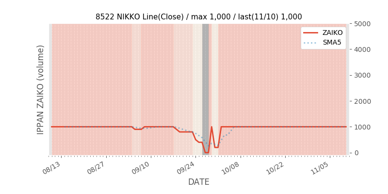 権利落ち日になると在庫が急回復します。どれだけの在庫が供給されたかを類推できます。もちろん、権利付最終日以前に大量補充された例も目立ちますから、過去チャートをご覧になる際は日付にご注意ください。