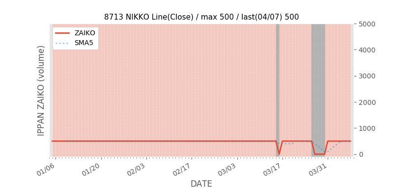 権利落ち日になると在庫が急回復します。どれだけの在庫が供給されたかを類推できます。もちろん、権利付最終日以前に大量補充された例も目立ちますから、過去チャートをご覧になる際は日付にご注意ください。