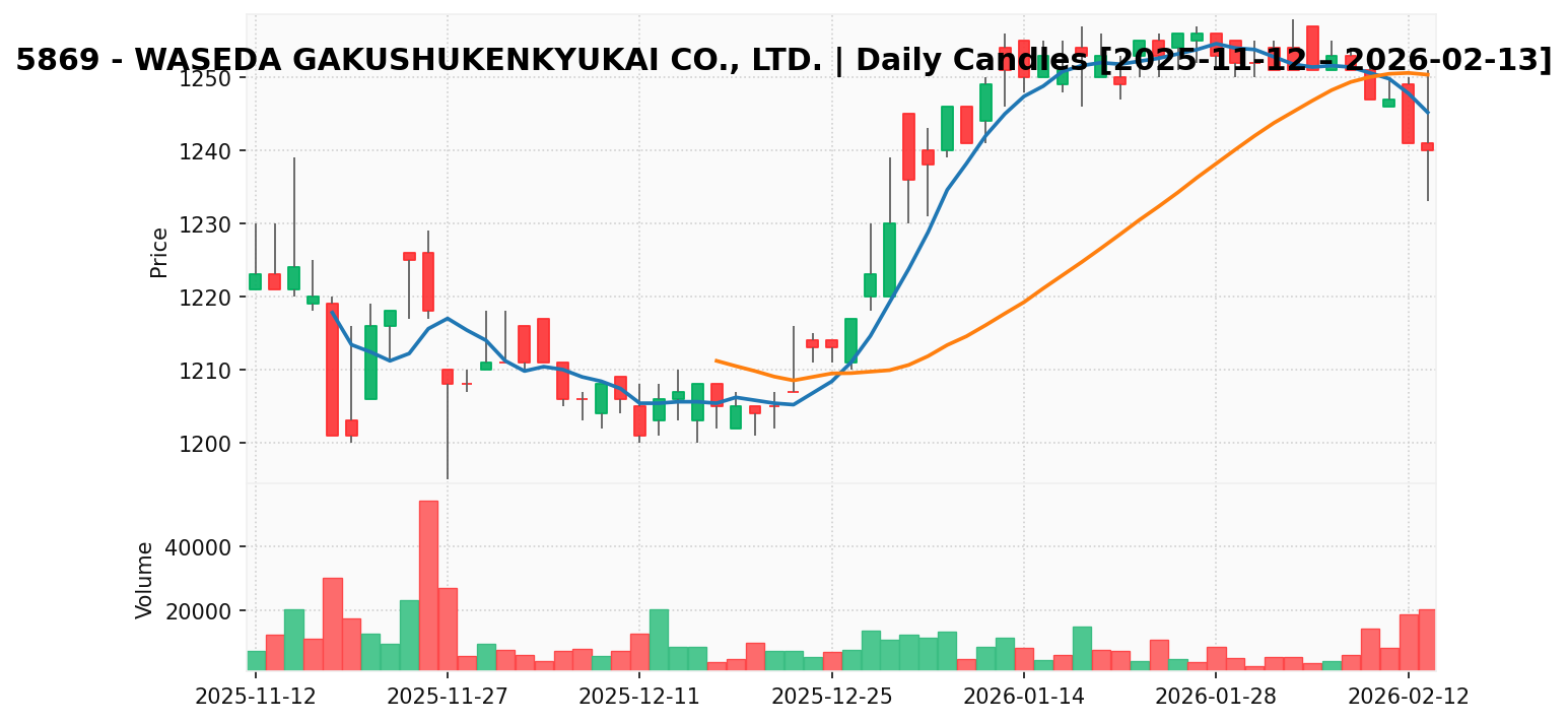 早稲田学習研究会(銘柄コード:5869) ※2026/02/16朝更新