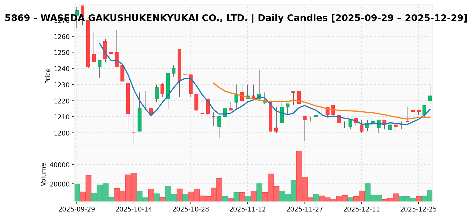 早稲田学習研究会(銘柄コード:5869) ※2025/12/30朝更新