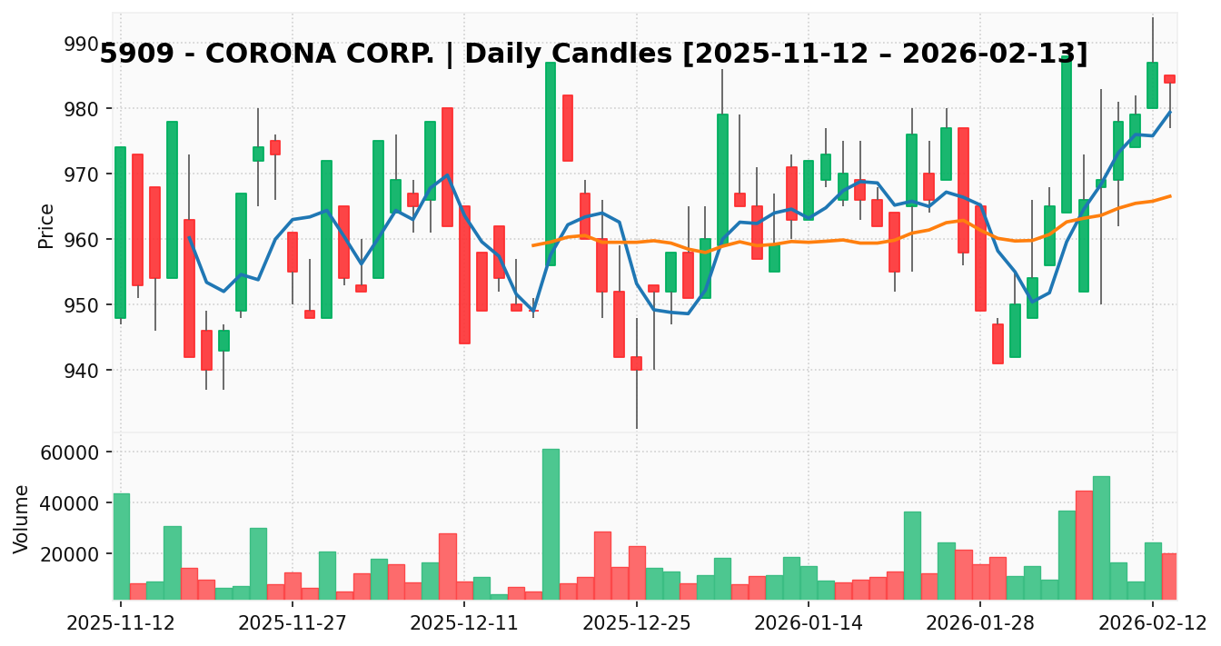 コロナ(銘柄コード:5909) ※2026/02/15朝更新