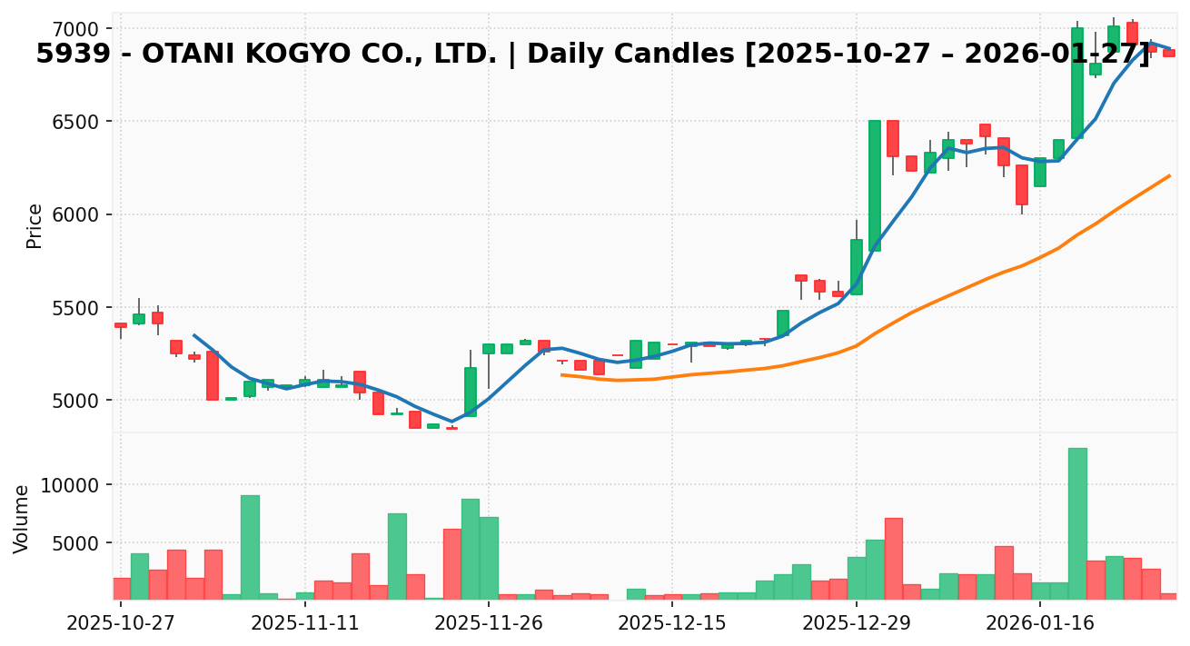 大谷工業(銘柄コード:5939) ※2026/01/28朝更新
