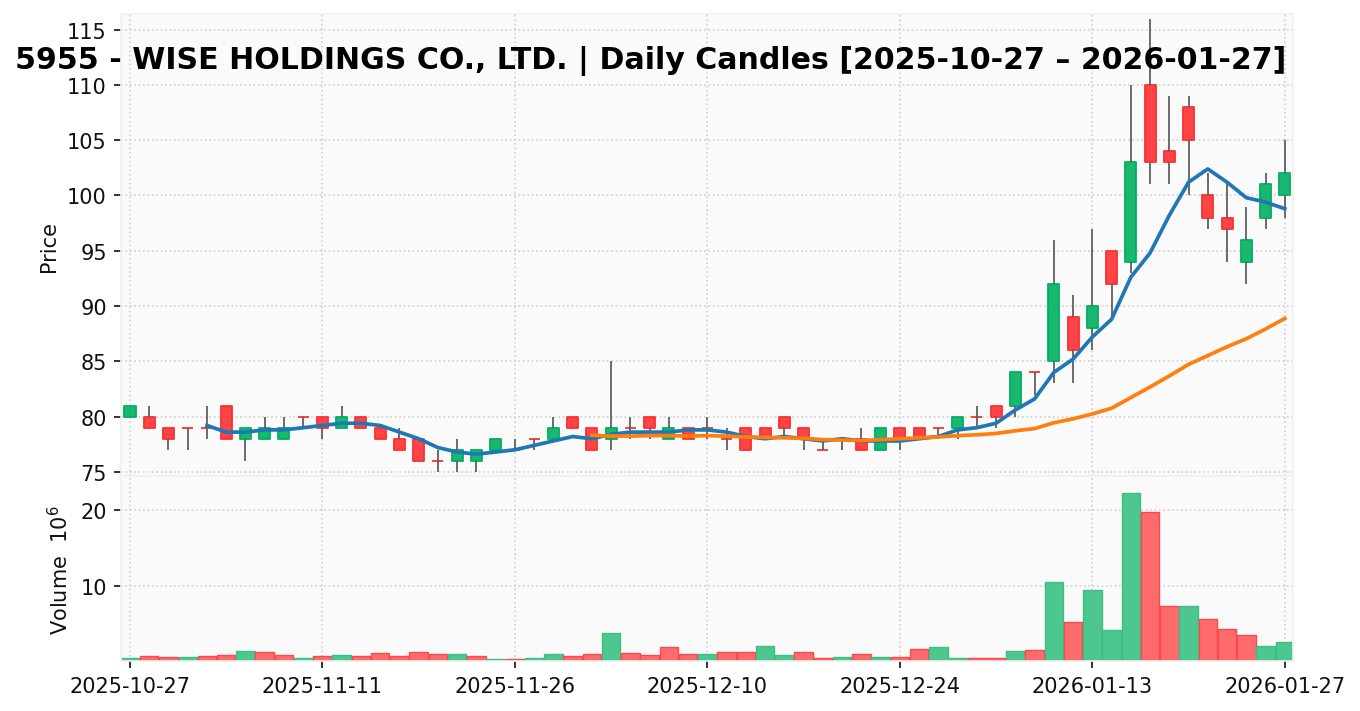 ワイズ(銘柄コード:5955) ※2026/01/28朝更新