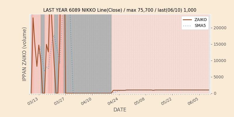 権利落ち日になると在庫が急回復します。どれだけの在庫が供給されたかを類推できます。もちろん、権利付最終日以前に大量補充された例も目立ちますから、過去チャートをご覧になる際は日付にご注意ください。