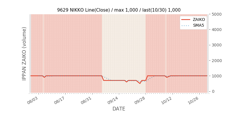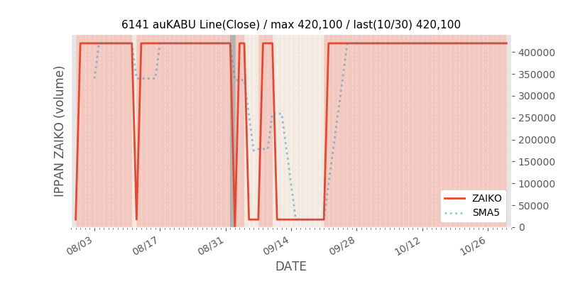 権利落ち日になると在庫が急回復します。どれだけの在庫が供給されたかを類推できます。もちろん、権利付最終日以前に大量補充された例も目立ちますから、過去チャートをご覧になる際は日付にご注意ください。
