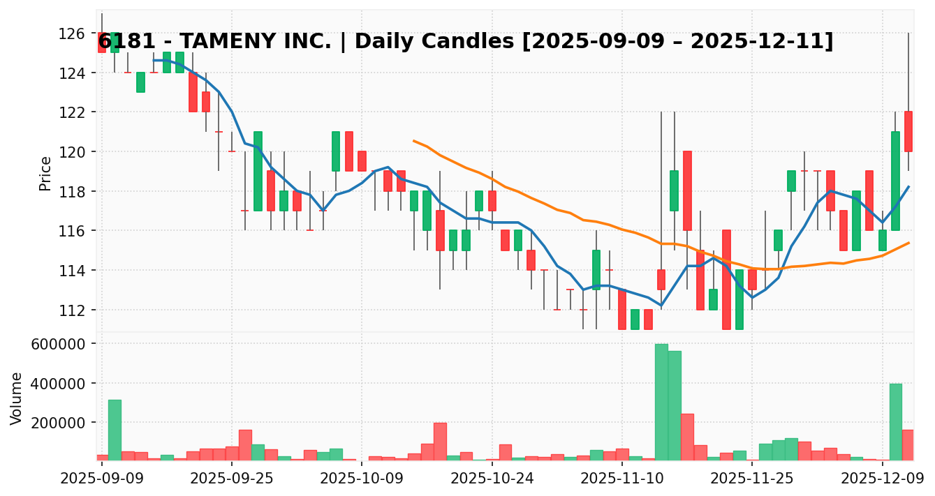 タメニー(銘柄コード:6181) ※2025/12/12朝更新