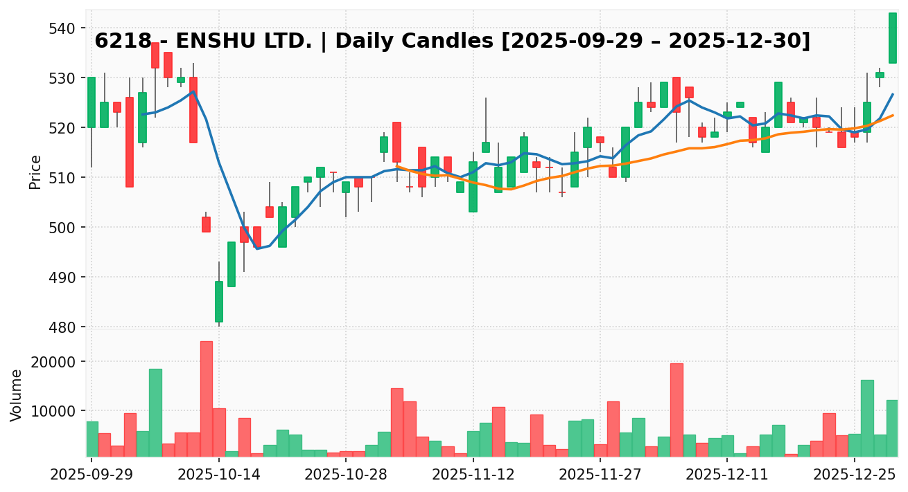 エンシュウ(銘柄コード:6218) ※2026/01/01朝更新