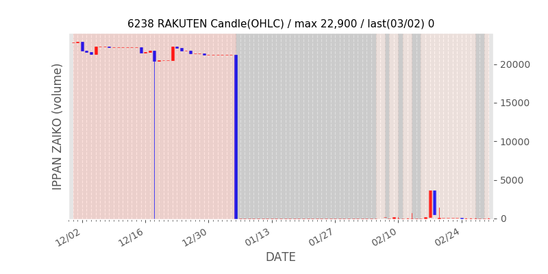高値付近にある指値注文の合計株数です。一見在庫は無いのにキープの注文だけ行われクロス実行されないまま終わる注文は多数あり、その株数がどのくらいか?を推定する手がかりです。当然株数の全てが一般売りとは限りませんが、在庫数だけでは実態が見えない現状への対策です。