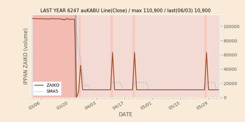 権利落ち日になると在庫が急回復します。どれだけの在庫が供給されたかを類推できます。もちろん、権利付最終日以前に大量補充された例も目立ちますから、過去チャートをご覧になる際は日付にご注意ください。